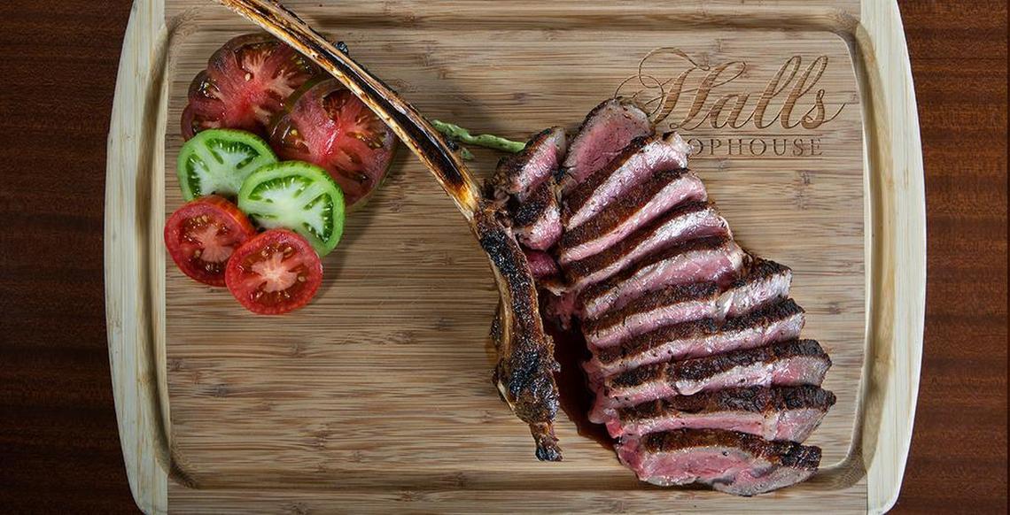 According to its website, Halls Chophouse only serves USDA Prime Steaks from Allen Brothers of Chicago, all of which are hand-selected, aged and hand-cut to exact portion specifications. Customers can choose from filet mignon, dry aged steaks, New York strip, ribeye and porterhouse steaks. There’s also plenty of other menu items for lunch and dinner, from seafood to sandwiches.